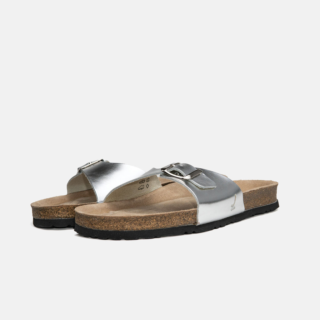 U pantoflí je možné individuální a optimální nastavení svršku pomocí kovových přezek.