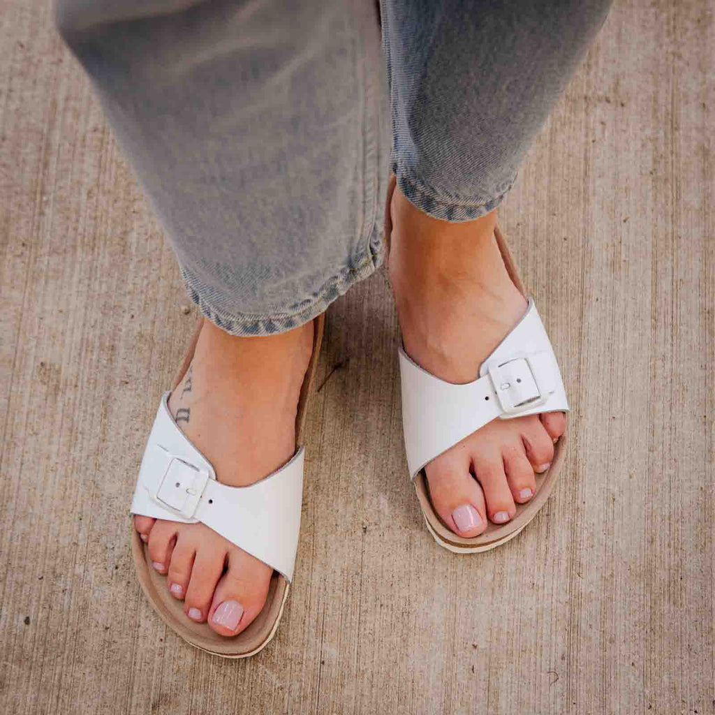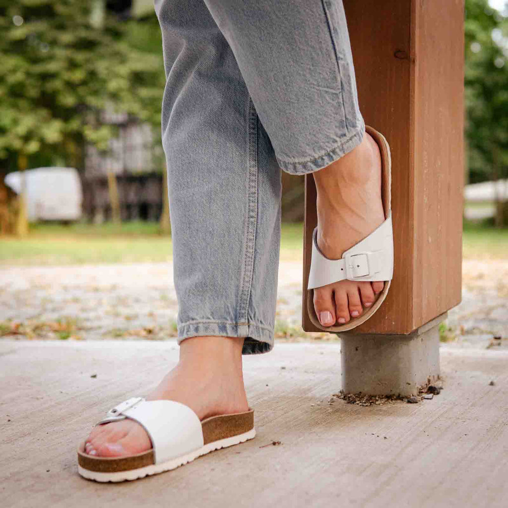 Dámské pantofle Ivy s minimalistickým střihem a anatomicky tvarovanou koženou stélkou z přírodního korku a latexu. Kombinace přírodních materiálů zajistí pohodlné nošení po celý den. Boty vyrobené v České republice.